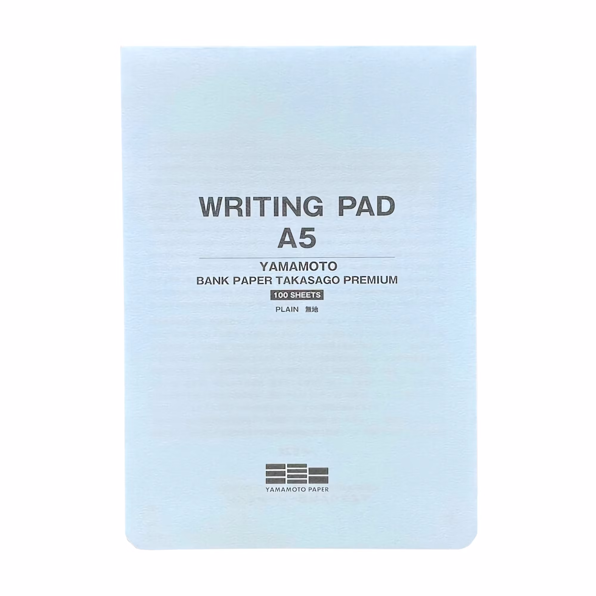 Yamamotos Writing Pad innehåller pappret Bank Paper Takasago Premium, som har utvecklats av Yamamoto Paper och Mitsubishi Paper Takasago Mill. De satte upp följande fem mål för detta nya papper: (1) Att sträva efter ett skrivpapper som är lämpligt för reservoarpennor, (2) med en silkeslen yta (jämnhet), (3) som förbättrar färgskuggning, (4) som producerar exakt färgåtergivning (ljusstyrka) och (5) som har snabba torktider för att vara lämplig för anteckningar. Pappret lämpar sig mycket väl för reservoarpennor.
