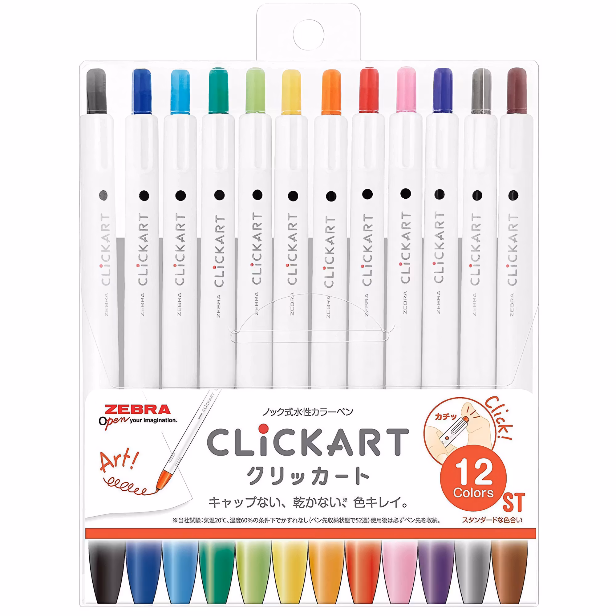 Zebra Clickart Knock är en snillrik tuschpenna med infällbar filtspets. Bläcket är speciellt framtaget för att motstå uttorkning under ett helt år – så länge du håller det indraget när det inte används. Bläcket förblir nämligen fuktigt genom att absorbera fukt från luften. Därför är det bäst om pennan förvaras i rum som inte är väldigt torra.
