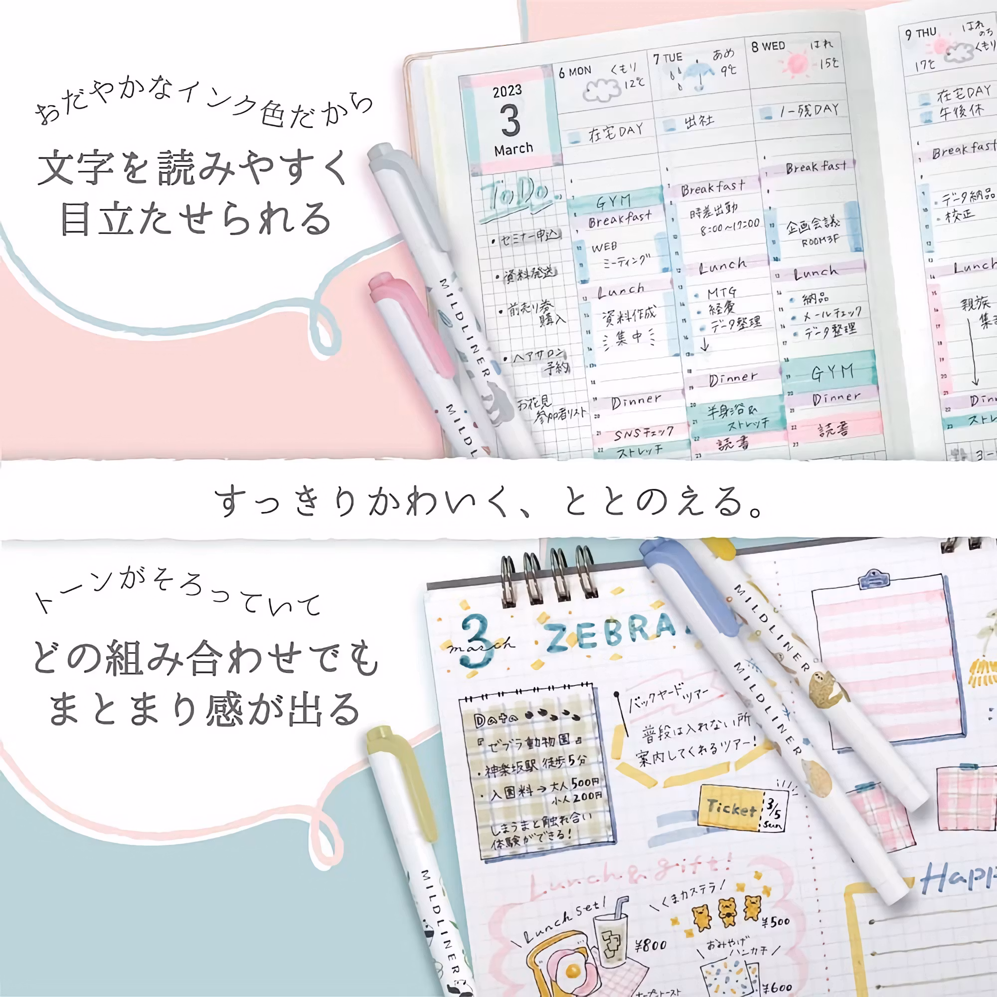 Zebra Mildliner är en markeringspenna/överstrykningspenna med härliga, milda färger som inte tar uppmärksamheten från det du faktiskt vill markera. Det vattenbaserade bläcket är snällare än på många andra markers, och blöder sällan igenom pappret. Pennan har två sidor: en bold och en fine. Den breda sidan används med fördel till att exempelvis göra överstrykningar, medan fine-sidan är perfekt för att göra understrykningar, markeringar eller för att skriva anteckningar.