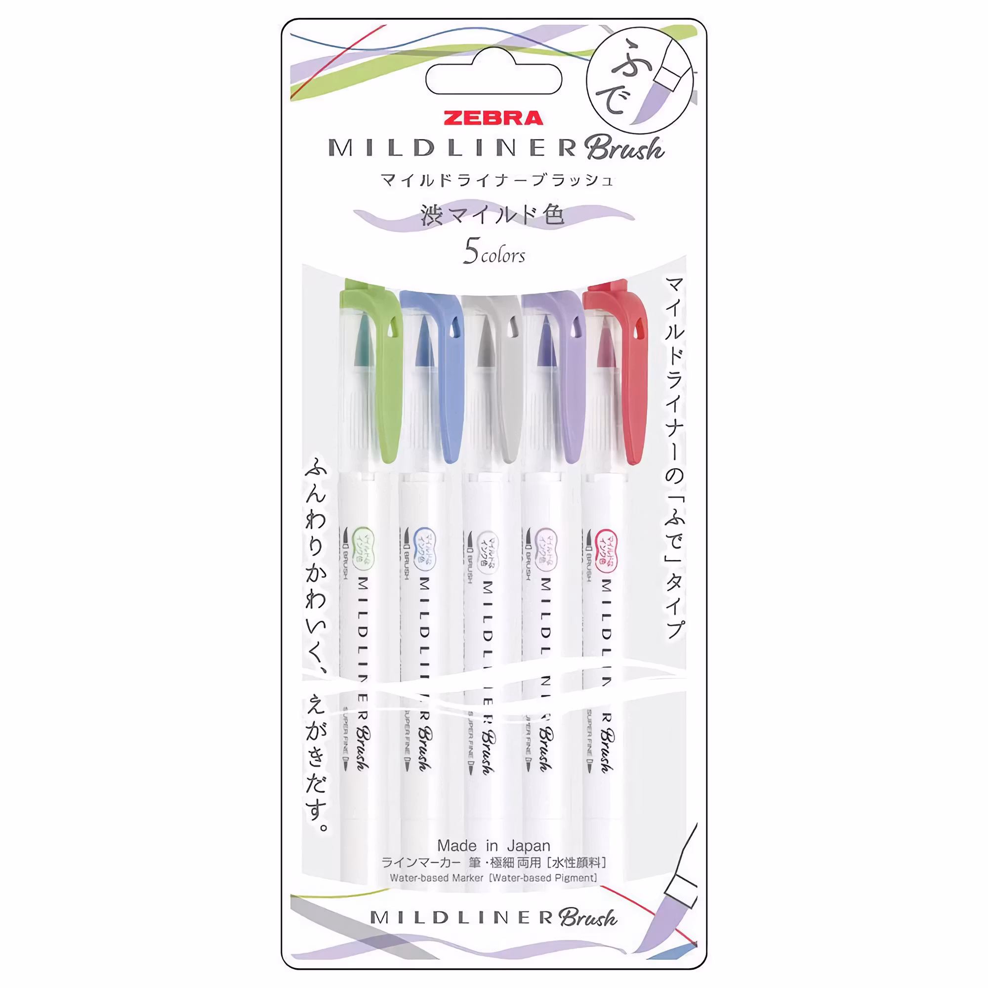Zebra Mildliner är en markeringspenna/överstrykningspenna med härliga, milda färger som inte tar uppmärksamheten från det du faktiskt vill markera. Det vattenbaserade bläcket är snällare än på många andra markers, och blöder sällan igenom pappret. Pennan har två sidor: en brush och en super fine. Penselsidan används med fördel till att exempelvis färglägga eller att skriva så kallad brush lettering, medan super fine-sidan är perfekt för att göra understrykningar, markeringar eller för att skriva anteckningar.