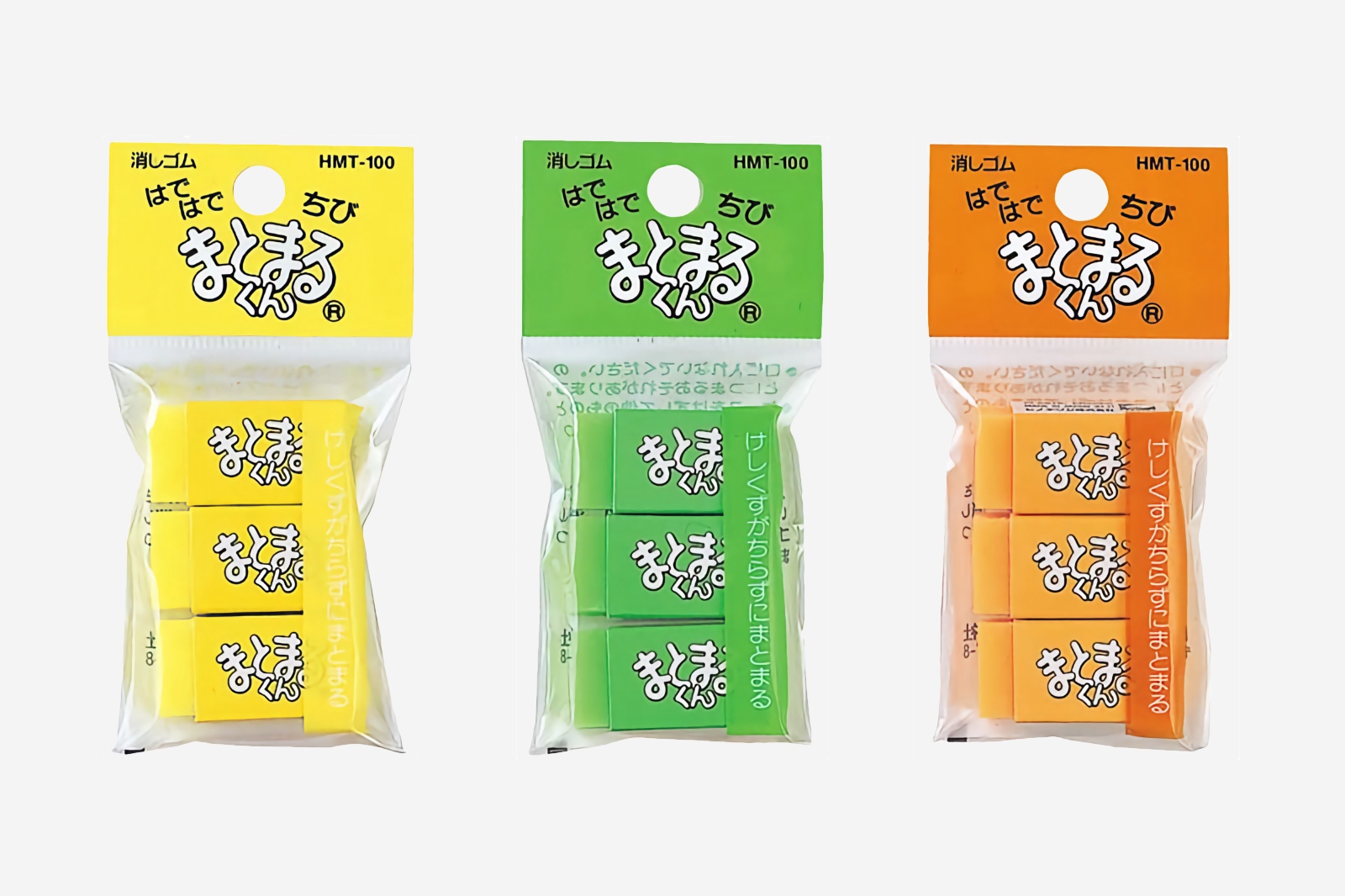 Hinodewashis suddgummi まとまるくん (Matomaru-kun) är på grund av sin uppsamlande förmåga ett mycket populärt suddgummi i Japan. Skräpet som bildas när du suddar samlas nämligen i prydliga högar, och en del fastnar också på själva suddet. Matomaru betyder nämligen just det – att samla in.