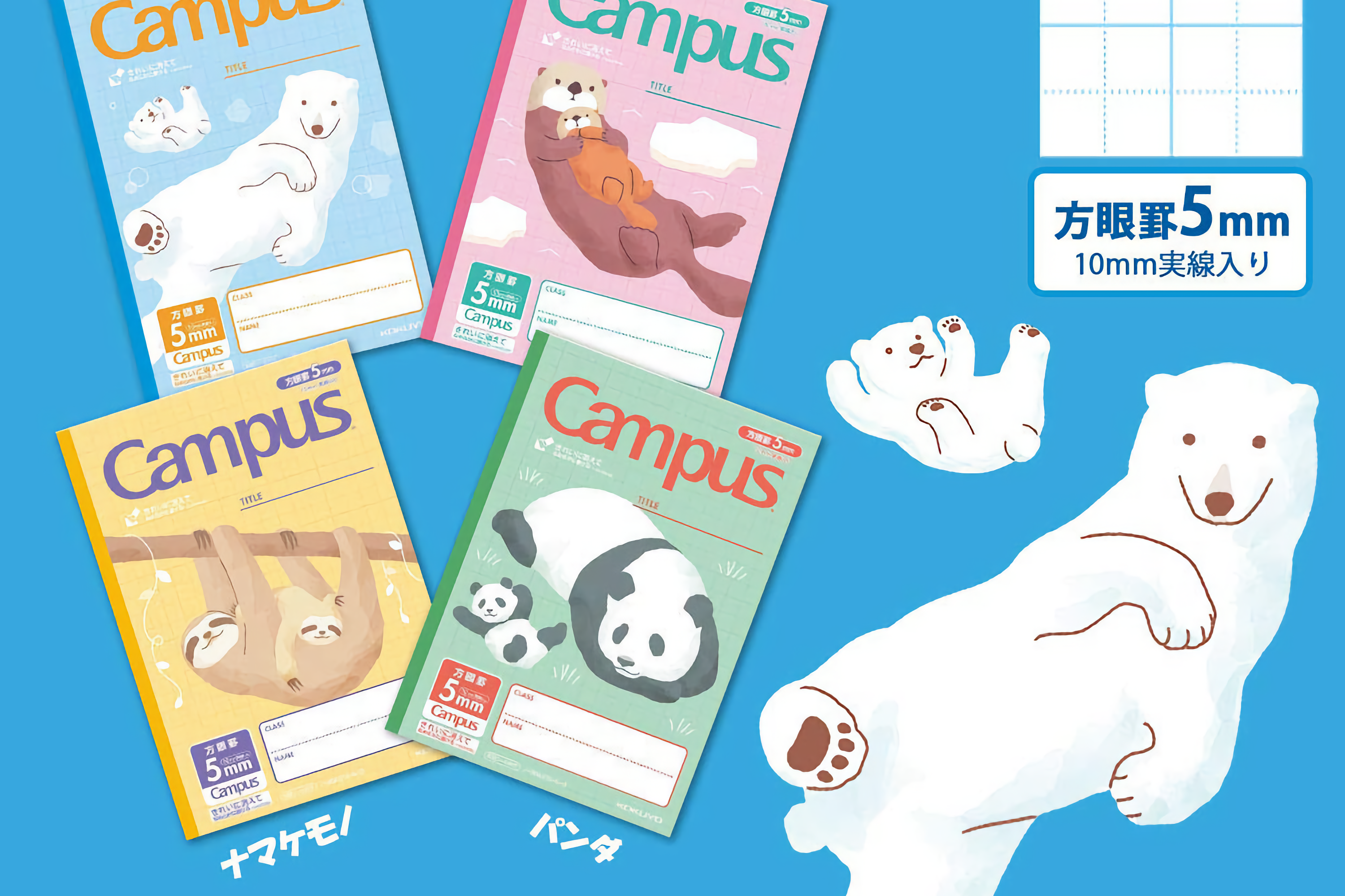 Nu finns Kokuyos Campus-serie med lekfulla djurmotiv! Campus-böckerna är omåttligt populära bland japanska studenter. Lägg där till att japanska studenter i allmänhet värderar anteckningsböcker långt högre än oss i väst, så får du en någorlunda bild av hur populära dessa är. Trots det överkomliga priset består Campus-serien av arkivbeständigt syrefritt papper, som utan problem klarar reservoarpennor. Anteckningsboken är limbunden.