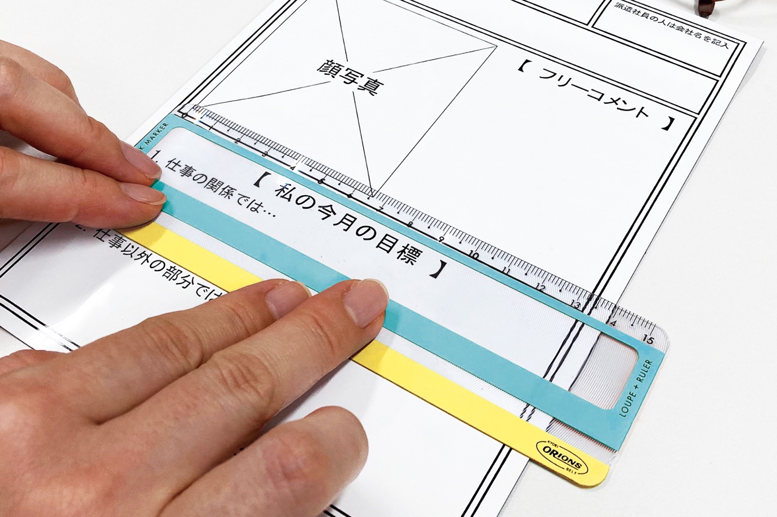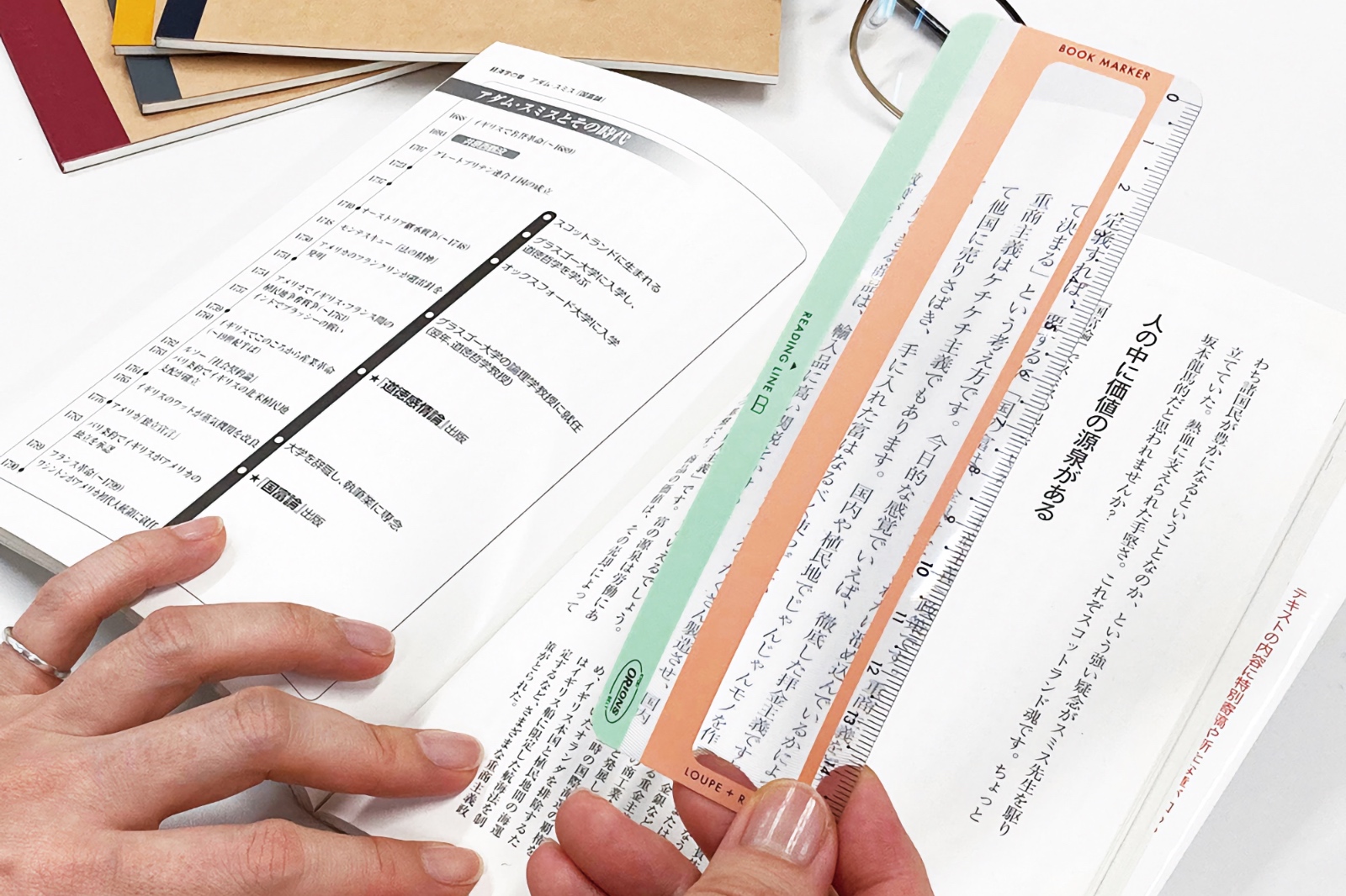 Kyoeis Orions Reading Line Loupe är en helpraktiskt och multifunktionell läslupp. Förutom luppen som förstorar texten, är den också utrustad med en linjal och en "läsrad". På grund av sin mycket tunna profil (0,4 mm) fungerar den också utmärkt som bokmärke.