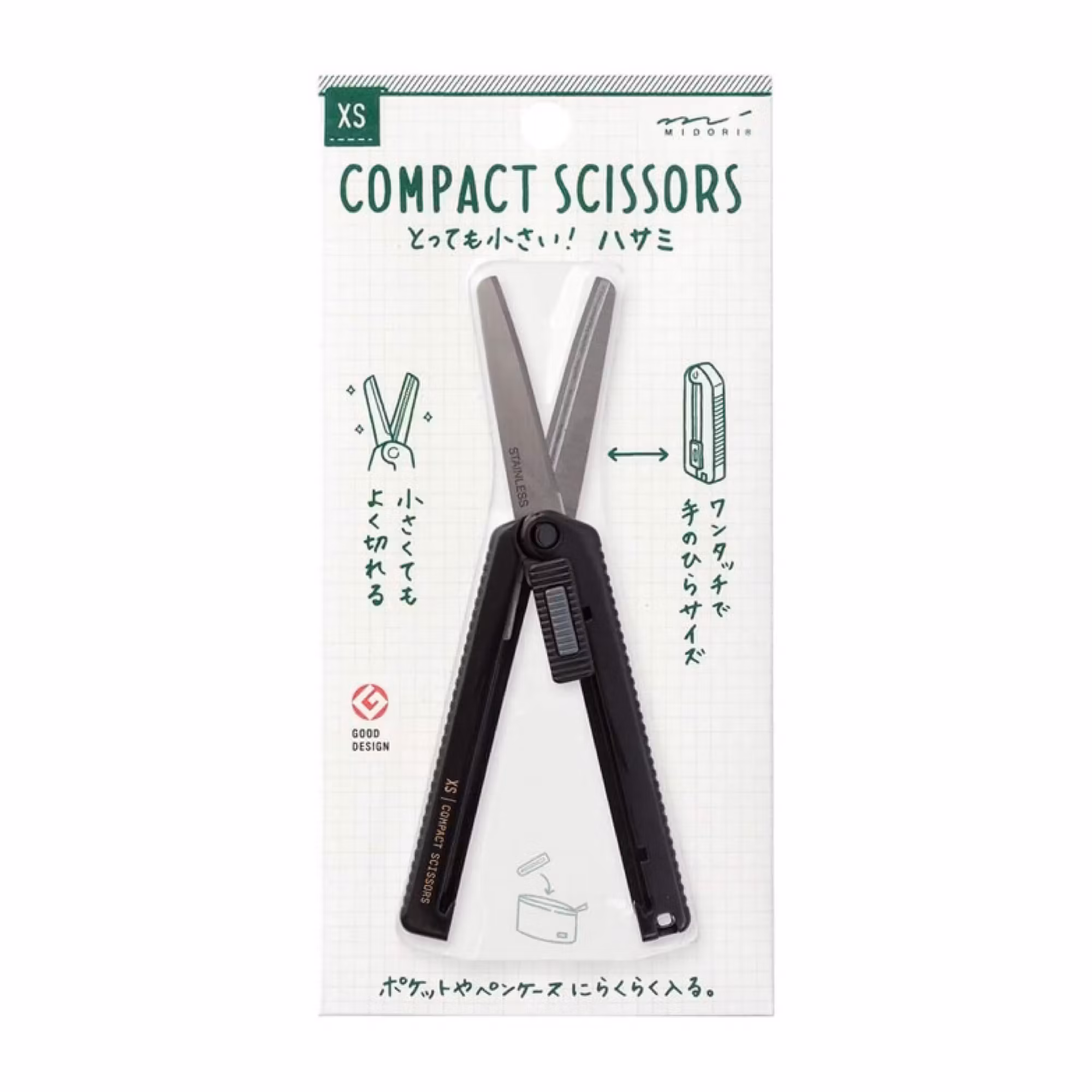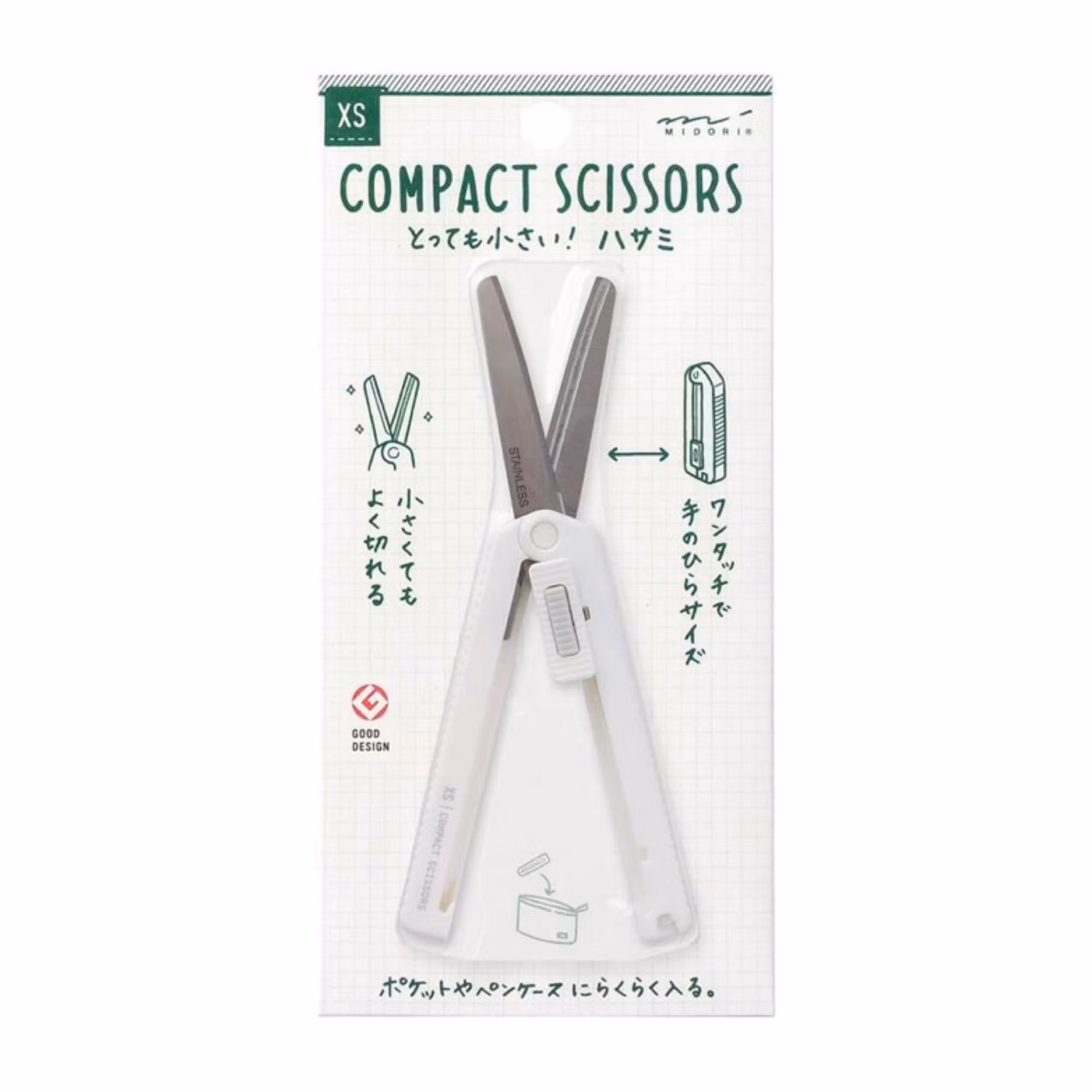 Med Midoris XS Compact Scissors kan du med lätthet alltid bära med dig en sax och ändå få massor med plats över. Bladen kan skjutas in i handtaget för säker förvaring när du klippt klart.