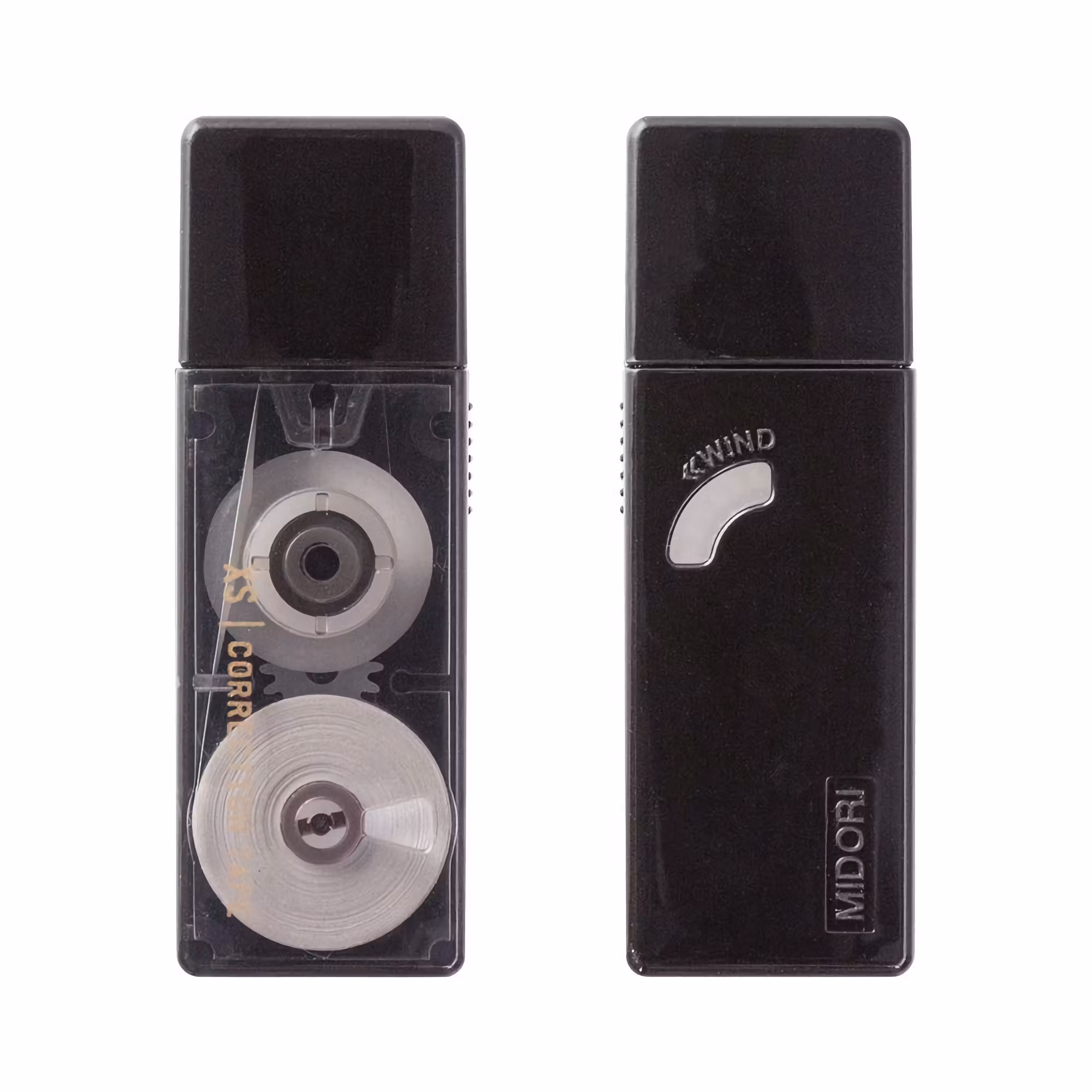 Skrivit fel? Misströsta inte – Midori kommer till undsättning! Den här finurliga korrigeringsrullen på bara ynka 5 mm innehåller 4,2 meter högkvalitativ och lättanvänd korrigeringstejp. Det transparenta munstycket gör det enkelt att placera tejpen rätt. Vinnare av Good Design Award.