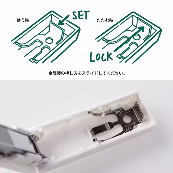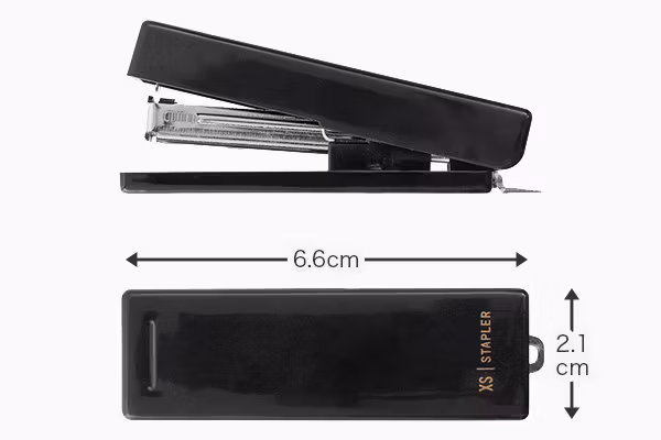 Vem har sagt att häftapparater behöver vara stora, tunga och fula? Förmodligen ingen, men så är det oftast ändå. Hur som helst har Midori lösningen! Markeringen på toppen underlättar för placeringen av stiftet. Använd endast häftklamrar i storlek 10 (standard). Klarar av att häfta ungefär 10 sidor.