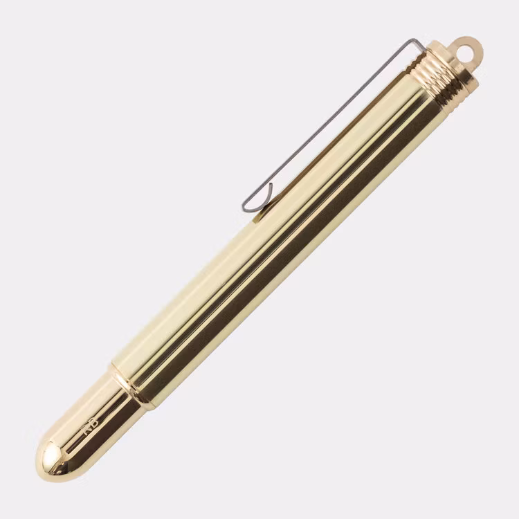 Nyhet! De perfektionistiska människorna på Traveler's Company har kombinerat en rad eggande egenskaper för att skapa den ultimata rollerball-pennan. Den är tålig, välbyggd och kompakt, men framförallt är den alldeles glänsande. På grund av sin litenhet är den perfekt att ha i fickan. I stället för att skruvas av, dras pennan enkelt ut ur hatten. Pennan kommer med svart bläck inuti en kropp av trä. Finns också som reservoarpenna, kulspetspenna och blyertspenna.